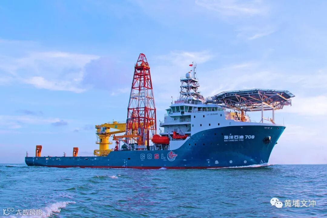 交付海洋石油708深水工程勘探船,这是全球首艘集钻井、水上工程、勘探功能于一体的3000米深水工程勘察船,中国海油深海油气开发"五型六船"之一。