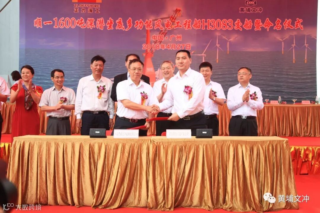 就在今日,公司为正力海洋工程有限公司建造的1600吨深潜坐底起重工程船命名交付,这是黄埔文冲上岛十周年的又一力作。