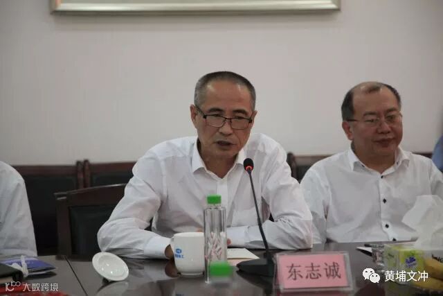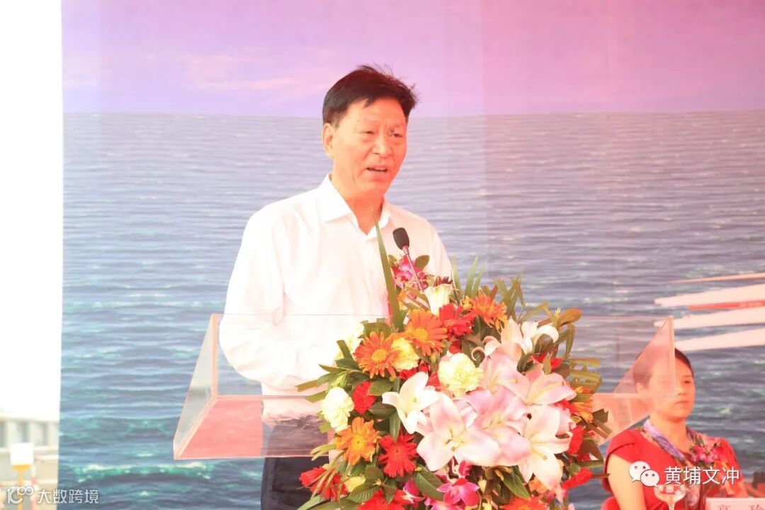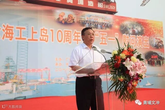早上,天公作美,数日阴雨,今日放晴,在综合办公楼前,黄埔文冲公司党委书记、董事长陈忠前向来宾致欢迎词。