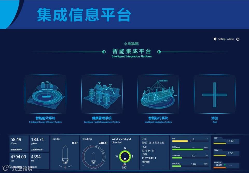 通过船舶智能运行与维护系统,“大智”轮能够实现了智能航行、智能机舱、智能能效管理等强大功能,并且可以像智能手机的“平台+APPs”模式一样,面向用户的各项需求,低成本、快速响应地提供各种定制化、个性化应用,真正使船舶具备了全船数据安全共享、设备健康评估、智能辅助决策、船岸一体化等面向全寿命周期的智能船特征。