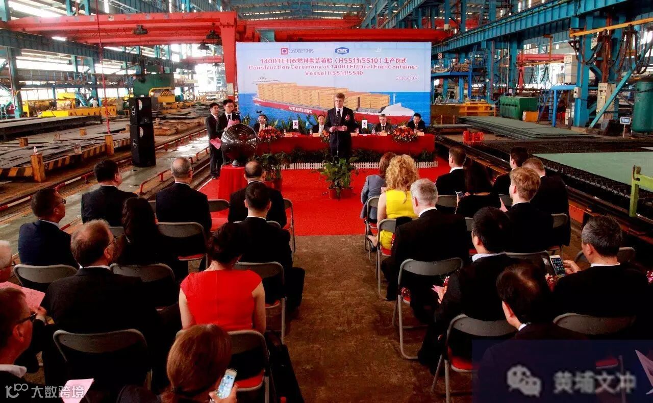芬兰 Containerships公司董事长诺德斯特姆、首席执行官拉克索宁、德国 Nordic Hamburg 公司总经理蓬塔、中船租赁总经理杨力、黄埔文冲总经理向辉明、文船公司总经理朱作国出席仪式。此外,芬兰大使馆、德国驻广州领事馆、SMB设计公司、ABS 船级社、联合船舶、WinGD公司、TGE公司等单位都安排高级管理人员参加仪式。