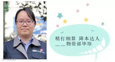 她,为公司成功实现采购成本下降立下了汗马功劳。她及时按需采购钢材,她牵头签订燃油的战略采购协议,她让11项通用物资在2016年框架协议单价上再降价。精打细算,持“家”有道,非她莫属。成本管控,我们要向她学习。