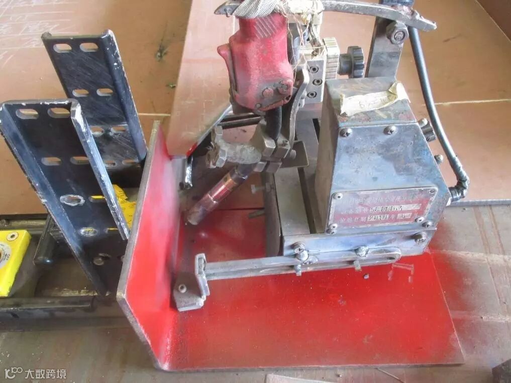 民船加工工艺组对此现象展开研究,目的是角焊机在焊接时能够保证整条角焊连续焊接无缝连接且无接头。在骨材的端部设计一个辅助工装和骨材接在一起,焊机小车行走至骨材自由端部时可继续沿着工装行走一段距离从而使焊接连续而不间断。有想两种骨材一是骨材未伸出板件边沿,可以直接在板件上放置工装;一种是骨材端部与板件端部平齐,工装放置平台上与板件端部靠紧。此工装的使用节省了焊接时间提高了效率,省去了接头打磨。