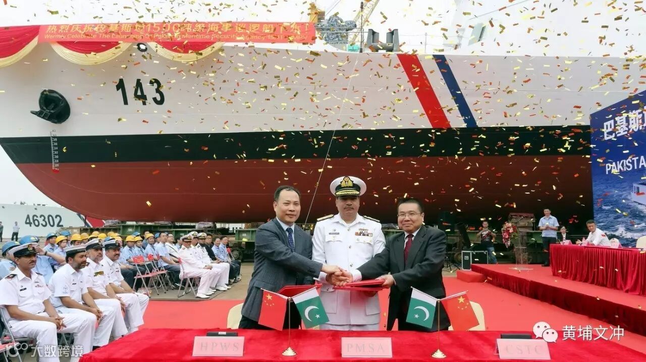 2015年9月,黄埔文冲签订了2艘巴基斯坦海事巡逻船建造合同,首制船在国内建造,第2艘在巴基斯坦建造。2016年1月29日,首制船开工;2016年8月16日,首制船上船台。黄埔文冲是我国军贸舰船建造的重要基地,曾为友好国家建造了40多艘军援军贸舰船。巴基斯坦1500吨巡逻船是黄埔文冲近年来最大的防务外贸订单,对公司在新形势下努力开拓防务装备外贸业务具有里程碑的意义。