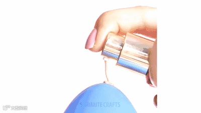 小气球吹鼓之后大小接近美妆蛋,在气球表面挤上粉底液用来涂底妆,均匀服帖不吸粉。