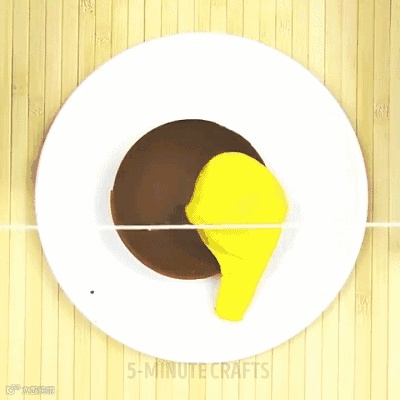 连盘子带气球放进冰箱冷藏30分钟,取出后放掉气球里的空气,碗状的巧克力底座就成型啦,放上冰激凌和水果,好吃又好看。