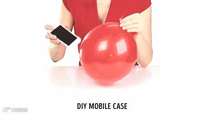 手机轻轻压在吹起的气球上,一只手慢慢给气球放气,另一只手随气球向下轻压,气球里的气放完,手机也就稳稳的嵌在“壳”里了。