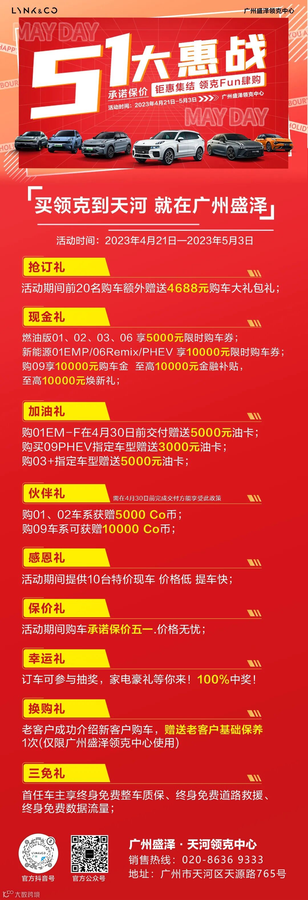 领克五一大惠战 承诺保价 广州盛泽领克中心