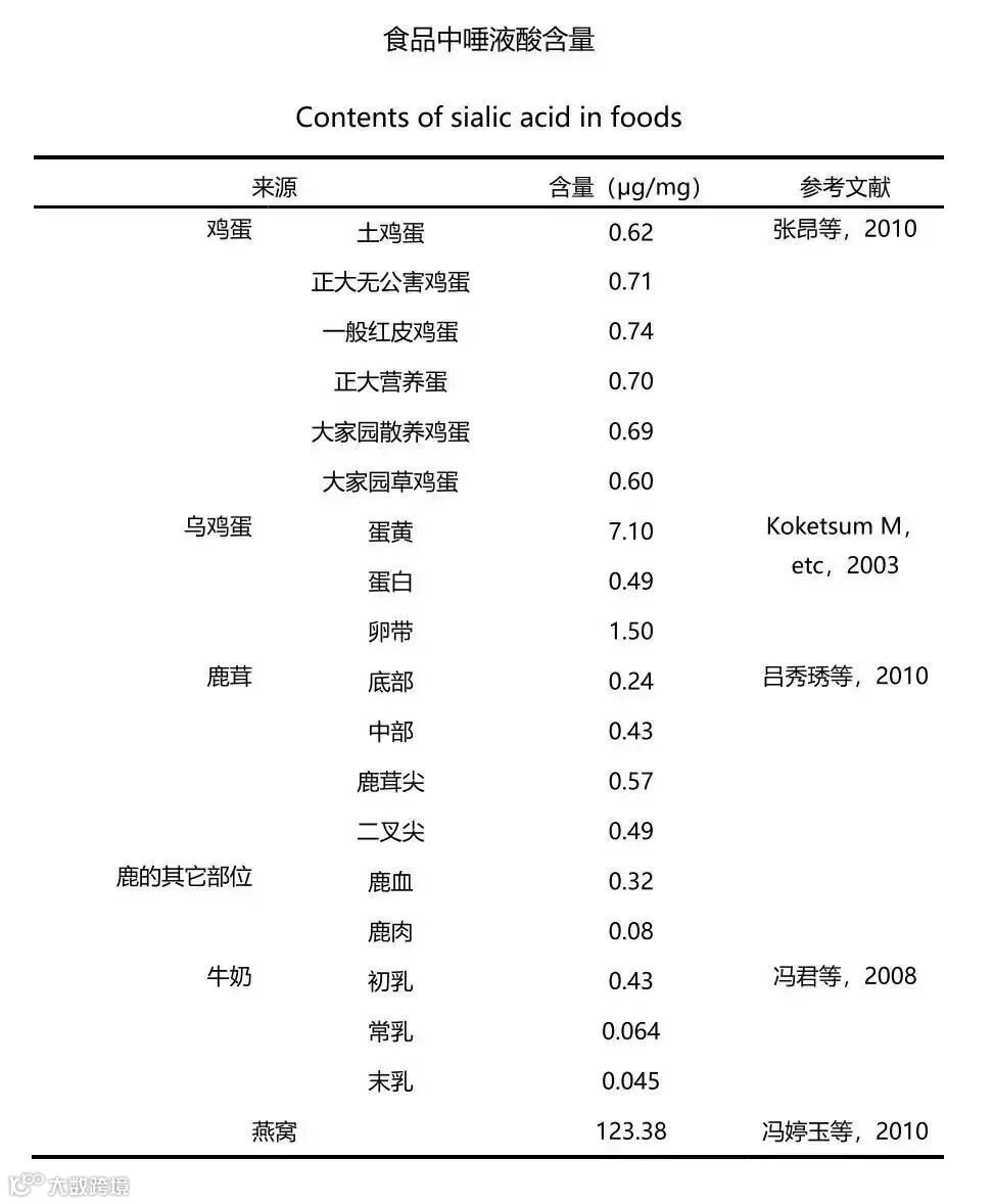 母乳、牛乳、鹿茸、鸡蛋、牛奶都含有唾液酸,但含量远不如燕窝。具体含量请看文末。