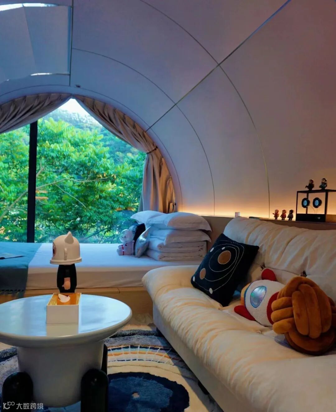 来都来了,自然要住上一晚,说不定能看到漫天的星空萤火虫!每个「帐篷」就是一栋独立的小别墅,并非你想象中的简易帐篷。窗外是碧草青山,鸟鸣不断,在房间就能独享私密山林景致。