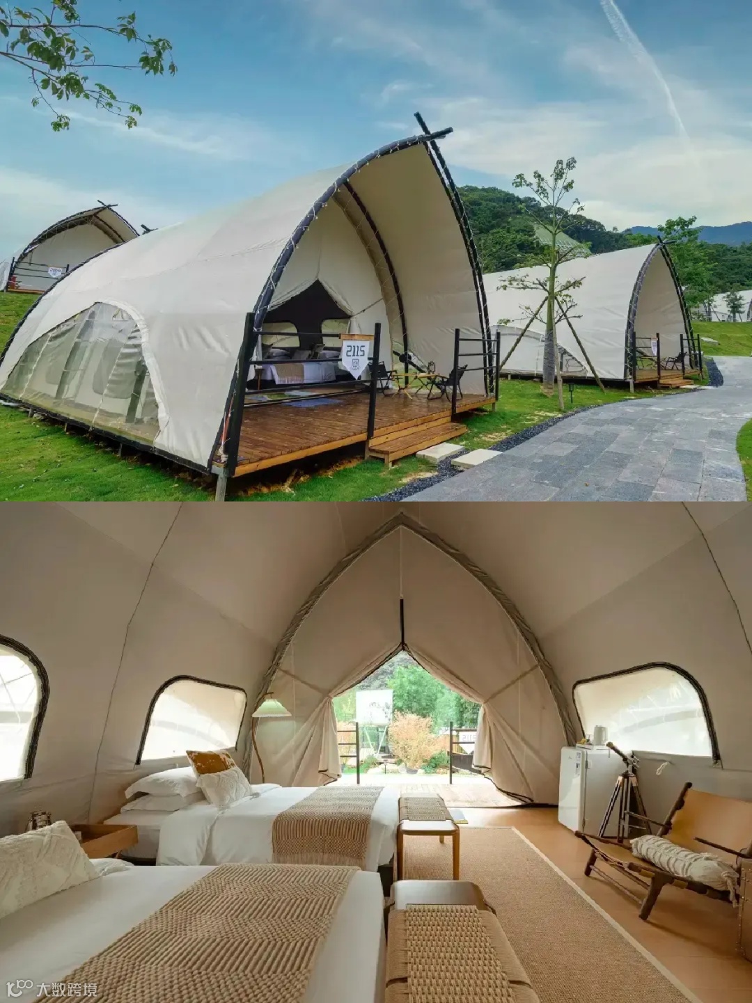 2.住宿:溪谷营地帆船帐篷
