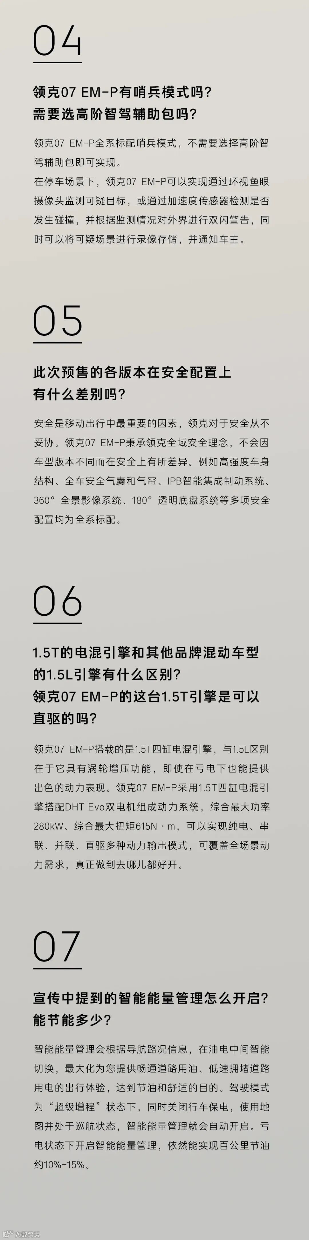 领克 07 EM-P答网友问