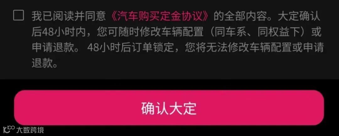 确认大定前或大定定金支付成功后48小时内,您可以随时修改车辆配置(同车系、同权益下)或申请退款。大定48小时后订单自动锁定,将无法再修改车辆信息。