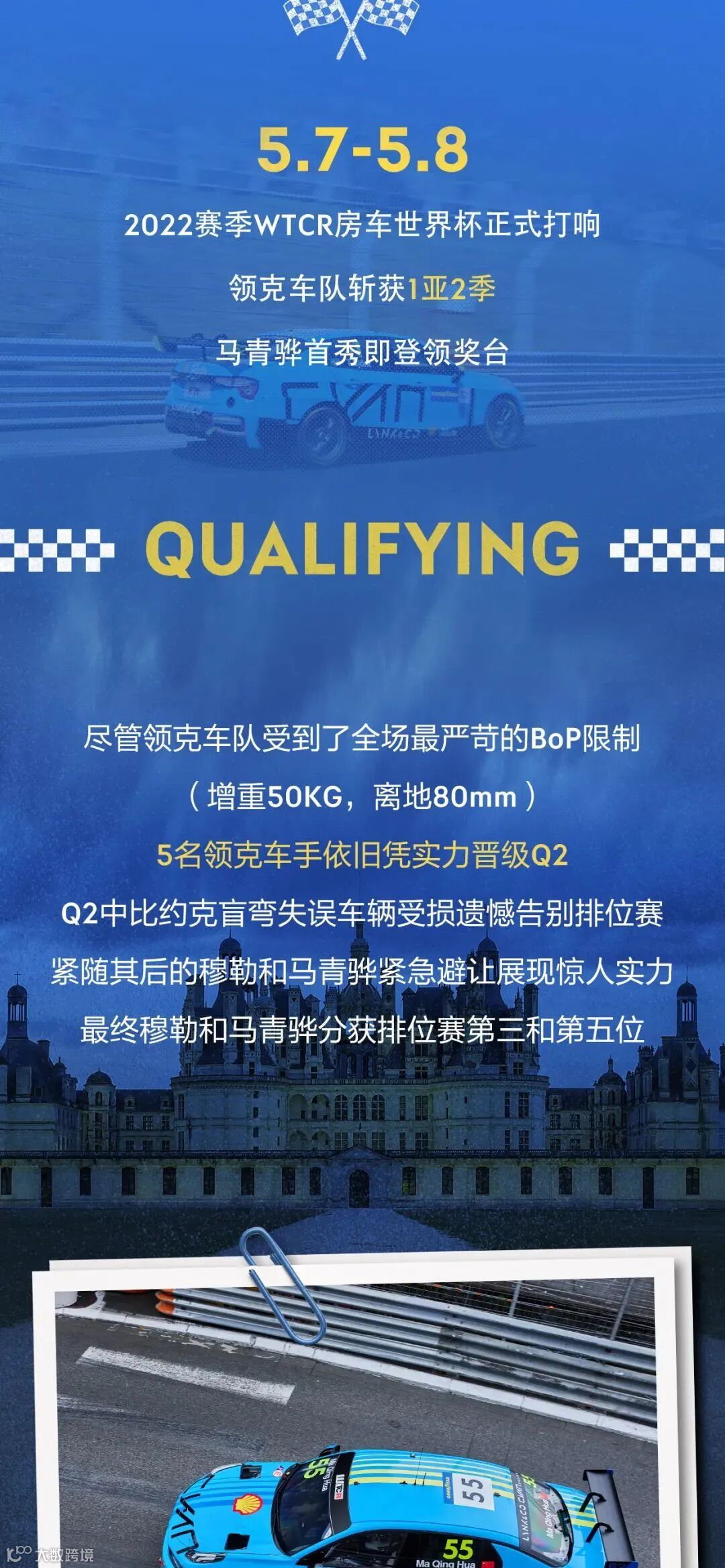 导读:2022WTCR 法国站落幕,领克车队夺得1亚2季,收获84积分。