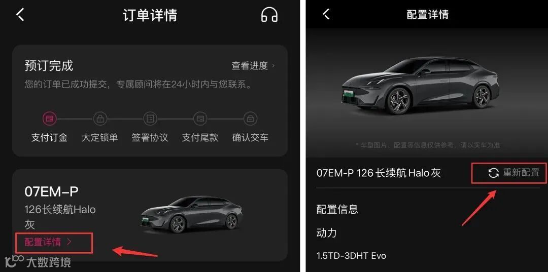 大定锁单前都可以更改配置,具体操作路径如下:打开领克app,在“我的订单-订单详情”中进入“配置详情”页面,点击“重新配置”即可进行重新选配。
