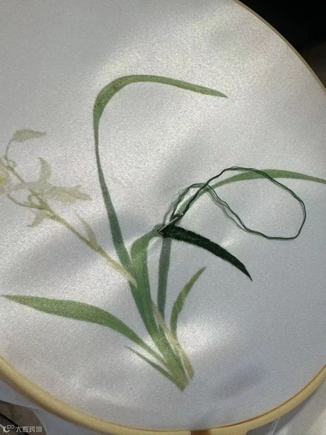 兰花是广绣的经典题材,花朵、兰草、花枝等不同部位,需要用不同的针法和不同颜色的绣线来处理。