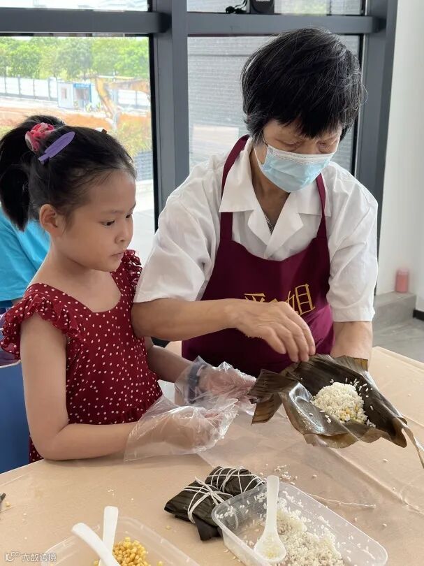 观众们一边包粽子,一边相互交流心得。即使是手法不甚熟练的孩子们,也全神贯注地投入其中,小心地放入馅料,在家长和老师的帮助下,尝试包出完美的波罗粽。