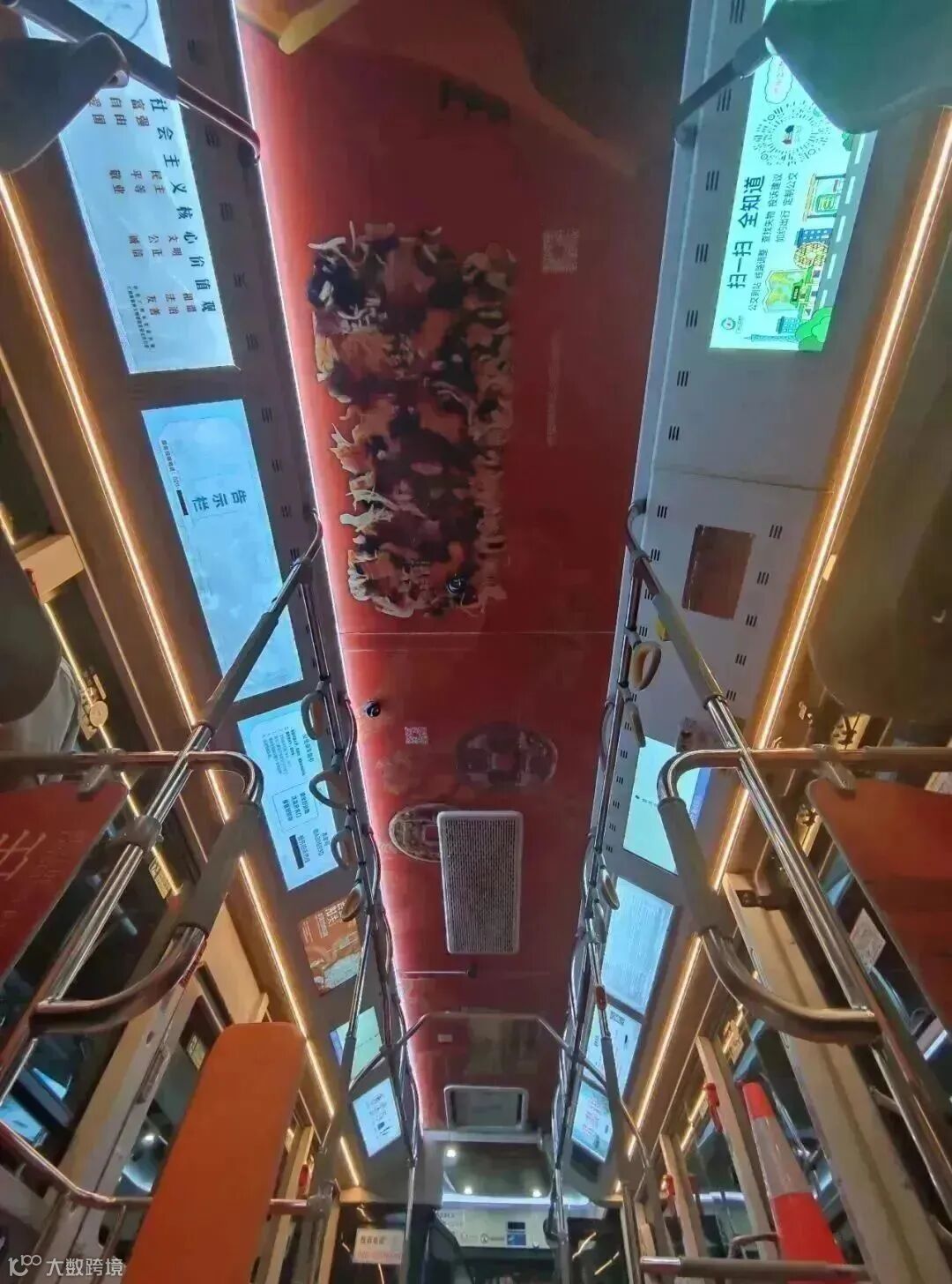 车身采用考古遗址常见的褐色,极具历史厚重感。车身和车厢内印有广州海事博物馆和南海神庙,以及展览时间、地点等简要信息,同时选取展览中一些重点文物作为装饰,包括千眼千手观音残像、“五星出东方利中国”锦护臂、“延年益寿大宜子孙”锦鸡鸣枕、劳作俑、战国对虎纹带形饰、虎形金牌、天人供养像、带翼天人像壁画图、舍利盒等历史文化瑰宝,车厢内电子显示屏同步展播展览宣传海报,一件件文物,诉说着丝路上的动人故事。