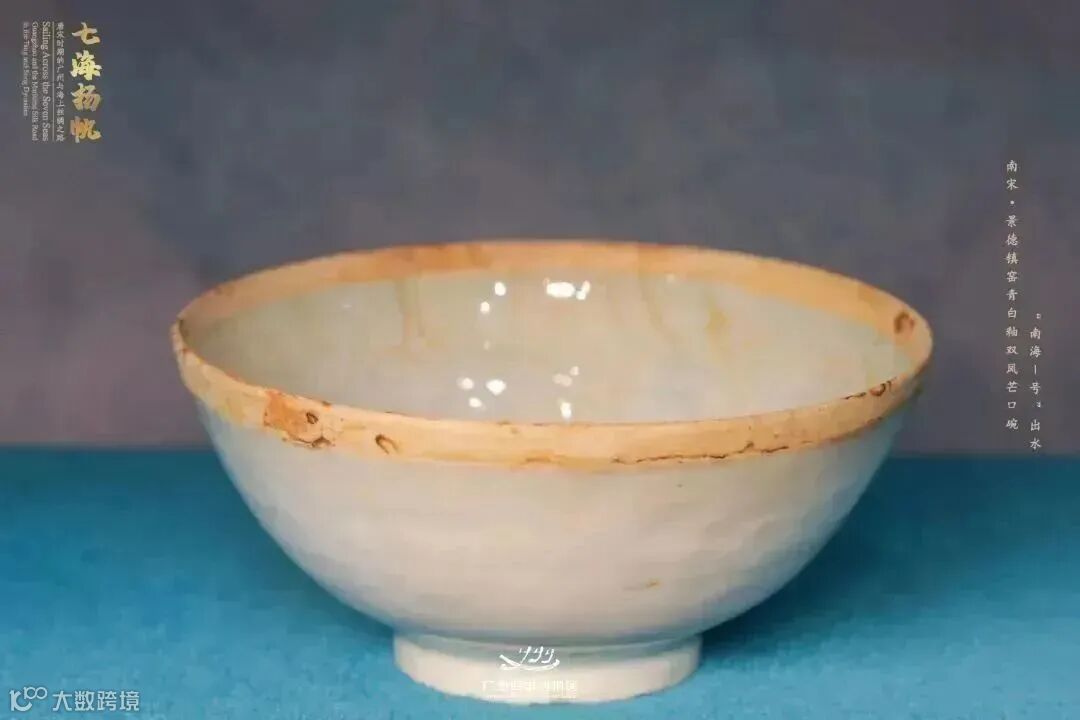 这一系列“南海I号”出水的景德镇窑芒口碗,就是宋代景德镇窑在大规模生产当中诞生的产物。后来人们为了弥补芒口既不美观又影响清洁的缺点,会用金、银、铜等材质在口沿处镶嵌一圈金属边,形成了独特的金边、银边、铜边。