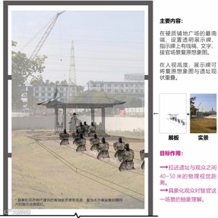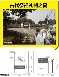 在参赛方案中,活化利用方案采用了展示雕塑、文化长廊、展示墙等,介绍接官亭遗址历史。