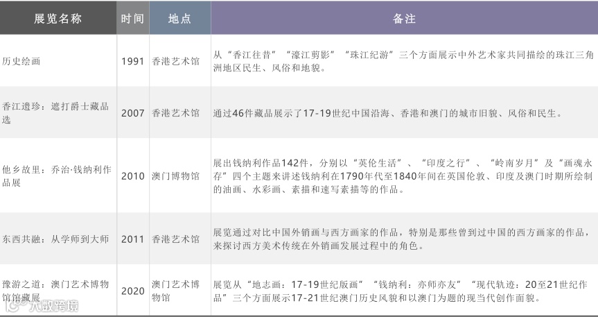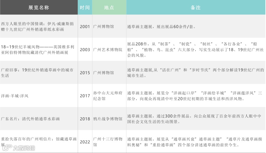 关于中国外销画主题的展览统计
