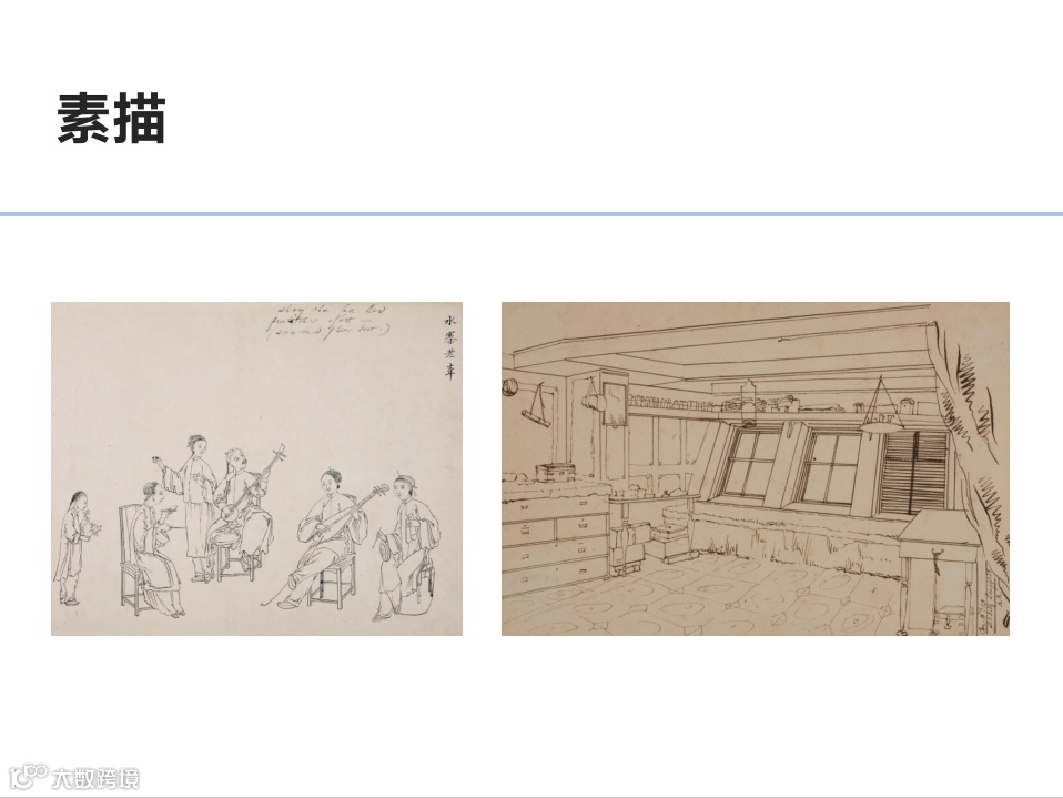 通过植物画、肖像画、船舶画、风景画、风俗画等这些不同题材的对比,可以发现中国和西方的绘画技法的不同以及在外销画中,画家进行了怎样的调适与融合。