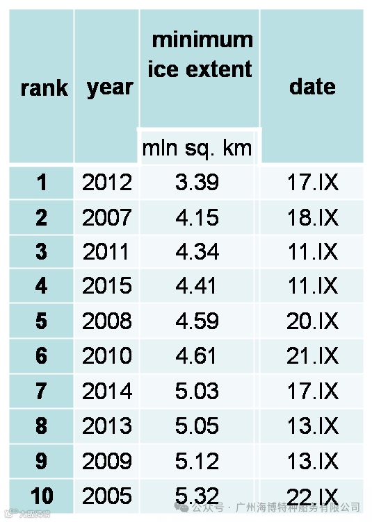 2015年9月平均海冰范围,红线为1980-2010年9月平均值