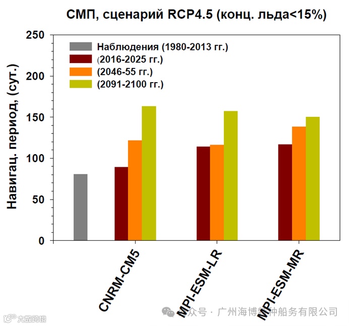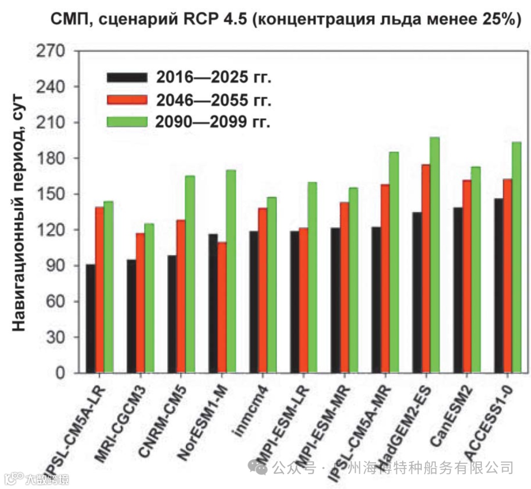 不同模式预测不同年代的东北航道开通日数(Mokhov & Khon, 2015)