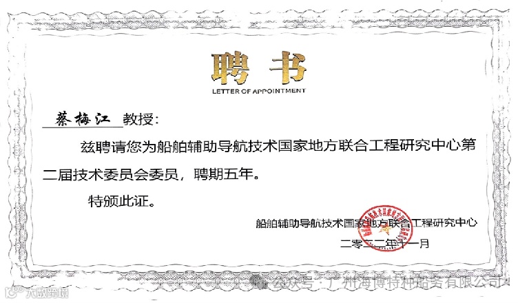 2019:获聘中国科学技术部极地科技专家委员会委员、大连海事大学心海教授、武汉理工大学水上安全与信息工程研究中心兼职教授;