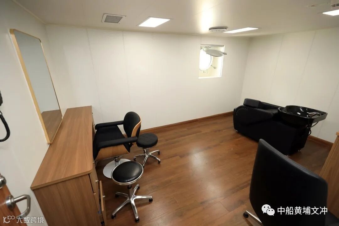 船上还配备了餐厅、健身房、理发室、图书室、洗衣房、医疗室等生活设施。“海巡09”一次航行就要花上两个月以上的时间,这些设施为船上的人员创造了良好的生活环境。