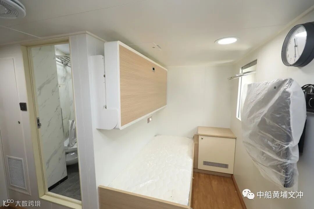 “海巡09”一共有55个住舱。在船上居住最头疼的问题就是振动和噪音大,而“海巡09” 全船近百个舱室都经过振动噪声的建模计算分析,每一个都量身定制了减振隔音材料和施工方案。“海巡09”取得C3V3符号,舒适度和减振降噪达到公务船领先水平。