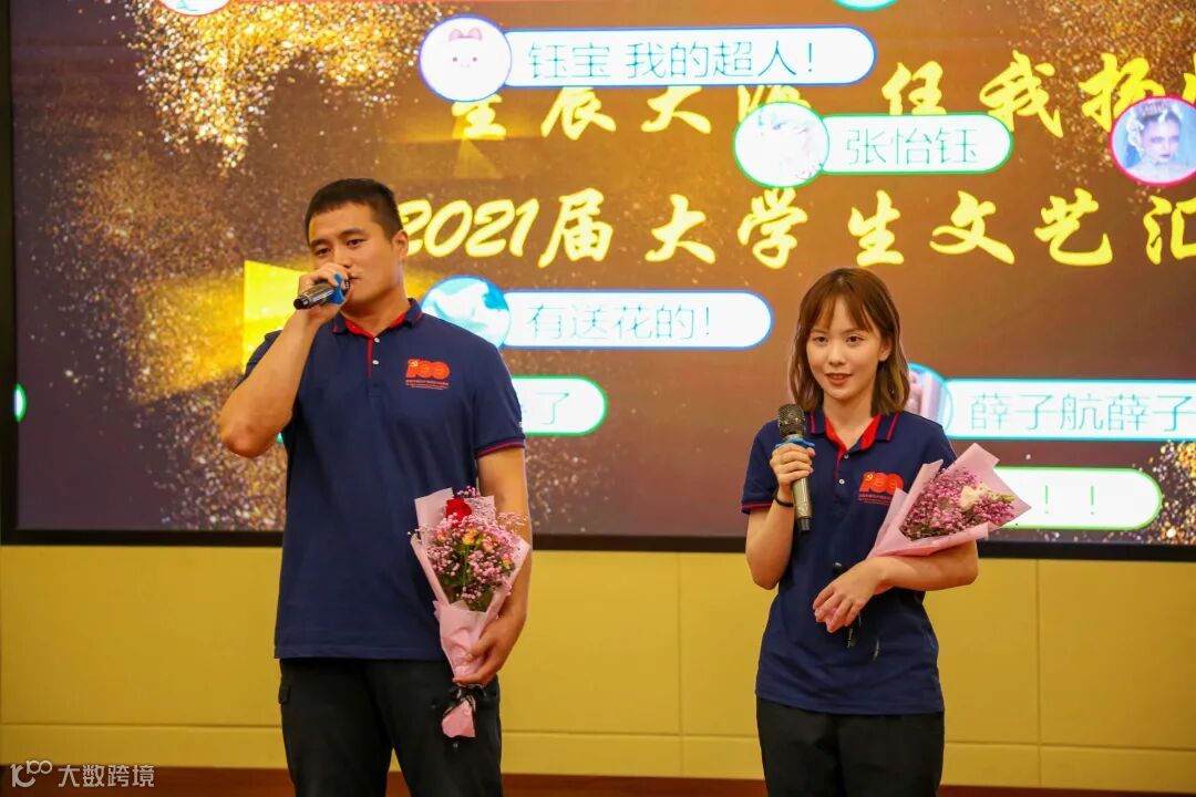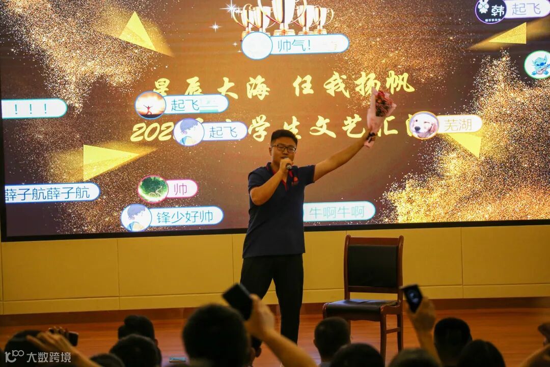 本次汇演现场观众通过线上扫码的形式参与抽奖及互动,通过弹幕表达对表演者的喜爱,为喜欢的节目撑腰。晚会正式开始前,首先播放了2021届大学生试岗培训期间的生活回顾合集,让大家回顾初入职场的点点滴滴。