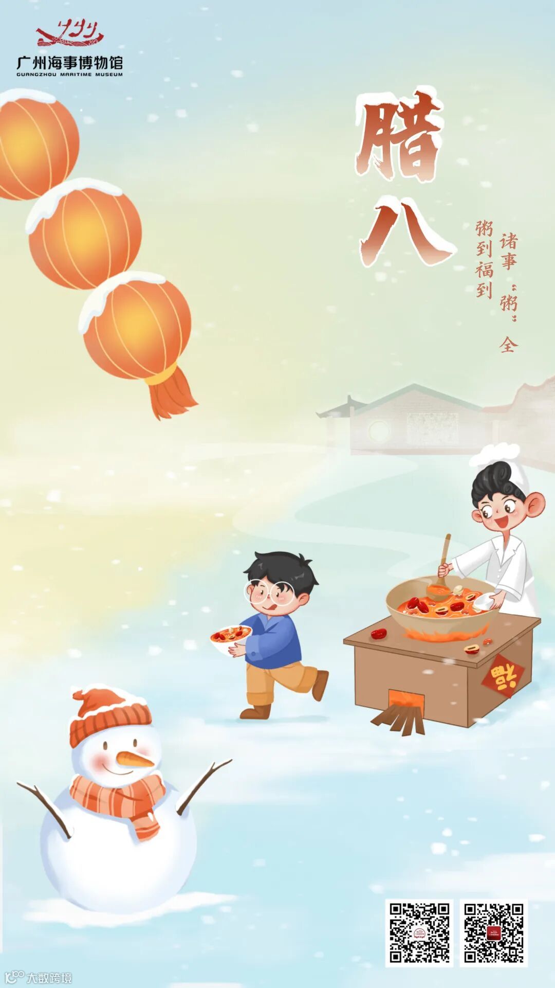 在腊八节,喝腊八粥的习俗从宋代就有记载。腊八粥通常是用五谷杂粮加上枣、杏仁、核桃仁、栗子、花生等,放在一起,用微火慢慢煮熟熬烂。在佛成道日煮腊八粥供佛,取法于牧女向佛献乳糜的传说,在民间则有庆贺五谷丰登、驱逐鬼邪瘟疫的意义。还有一些地方会有腌制腊八蒜、腊八冰等习俗。