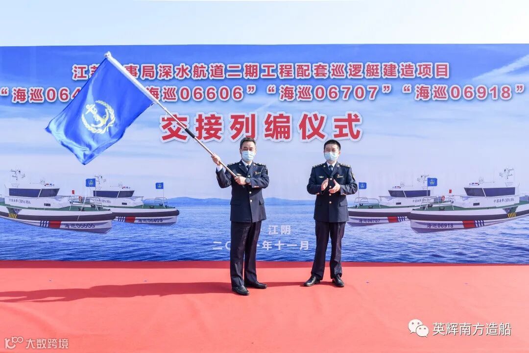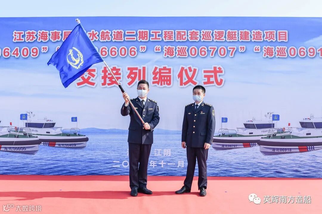 江苏海事局王秀峰副局长表示,今年是建党100周年,也是加快建设交通强国和“十四五”开局之年,四艘15米级高性能巡逻艇列编必将为助力江苏海事“二次飞跃”和高质量发展贡献力量。