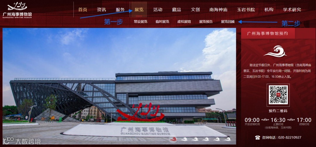 进入“广州海事博物馆”官网——点击“展览”下的“展览回顾”——点击 “乾坤戏场——潮州木雕藏品展”——“云逛展”