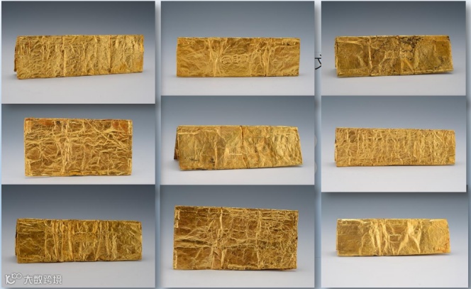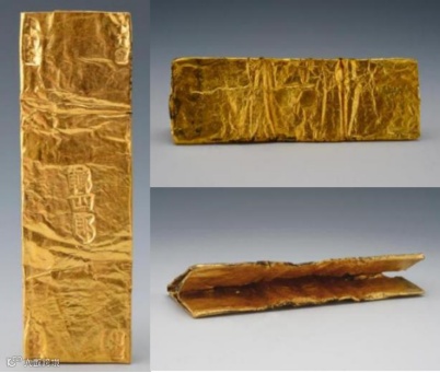 金箔又叫金叶子,通常有铭文,铭文会介绍金银铺主或金银匠名。在经过称重,其大小和重量相差不大,可以猜测金叶子应是作为金属货币流通。