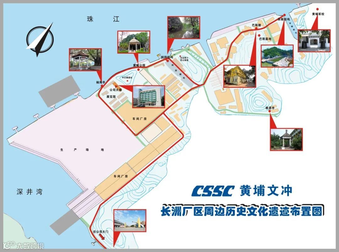 柯拜船坞、录顺船坞、巴斯楼、巴斯墓地、黄埔公园(中正公园)、袖海亭、济深公园(教思亭),这些地名,是不是很熟悉?它们是长洲岛珠江国际慢岛“家门口的红色学堂”的重要组成部分,位于公司长洲厂区,是公司清朝、民国时期留下的历史文化遗址,属广州市级保护文物。其中柯拜船坞被列为中国工业遗产第一批保护名录,排第一位。