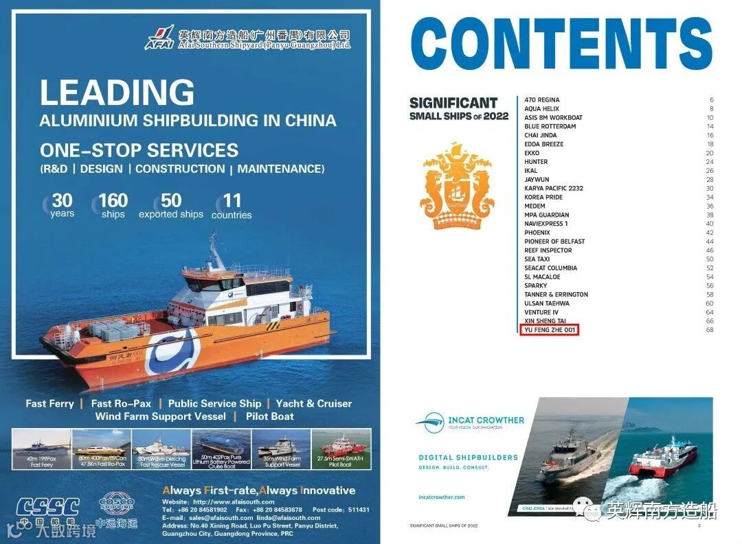 近日,英国皇家造船工程师学会发布了2022年度世界小型船舶名船录《Significant Small Ships of 2022》,由英辉南方建造交付的国内首艘高端风电运维船——“御风者001”凭借高效、安全、节能、环保等突出优势入选,进一步巩固了英辉南方在海上风电高端运维船领域的领先地位。