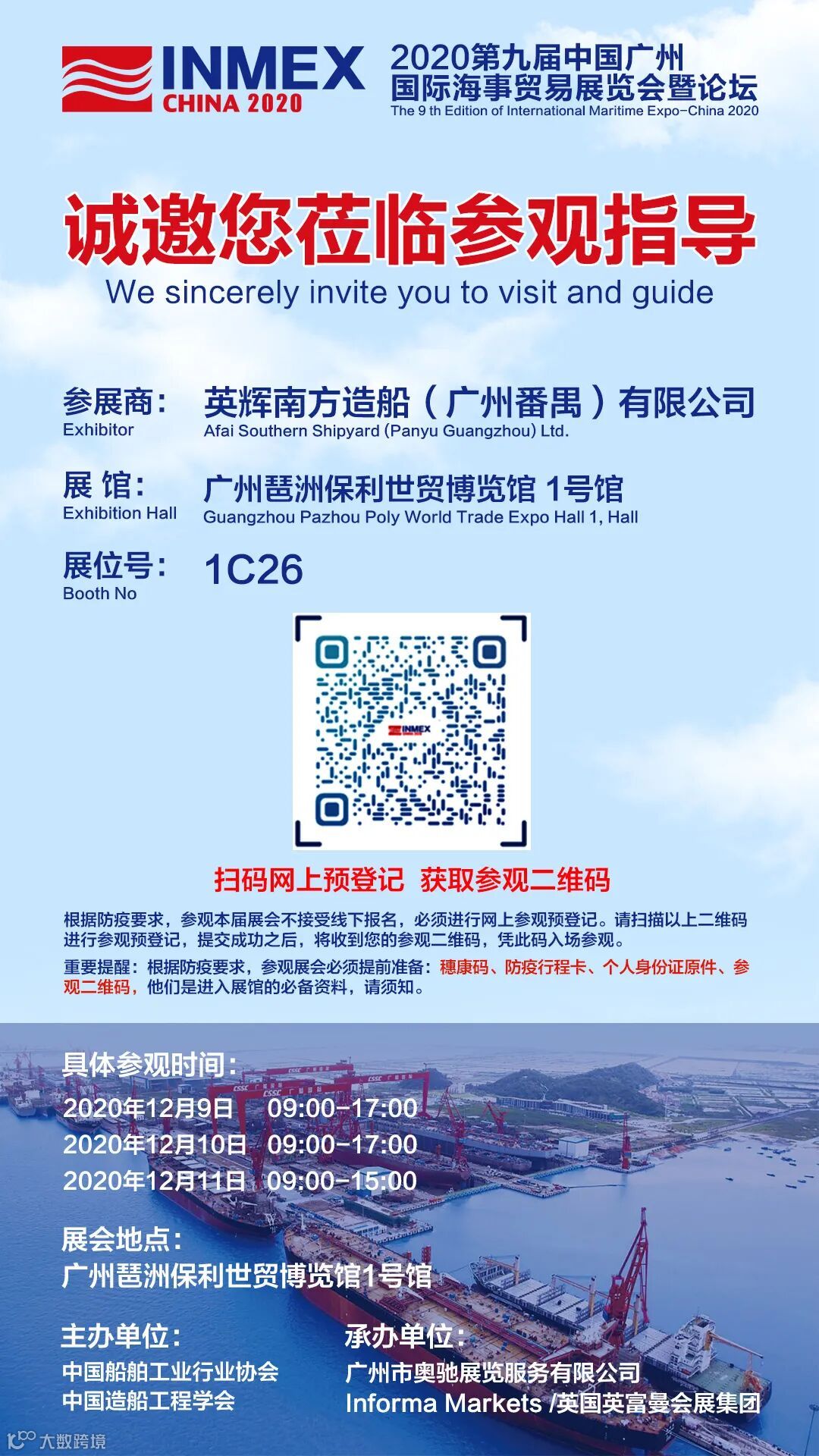 感谢长久以来对英辉南方的支持和关注,英辉南方于2020年12月9日-11日在广州琶洲保利世贸博览馆1号馆参展2020第九届中国广州国际海事贸易展览会暨论坛,展位号为1C26。诚邀各位领导、嘉宾莅临指导。