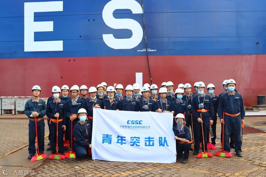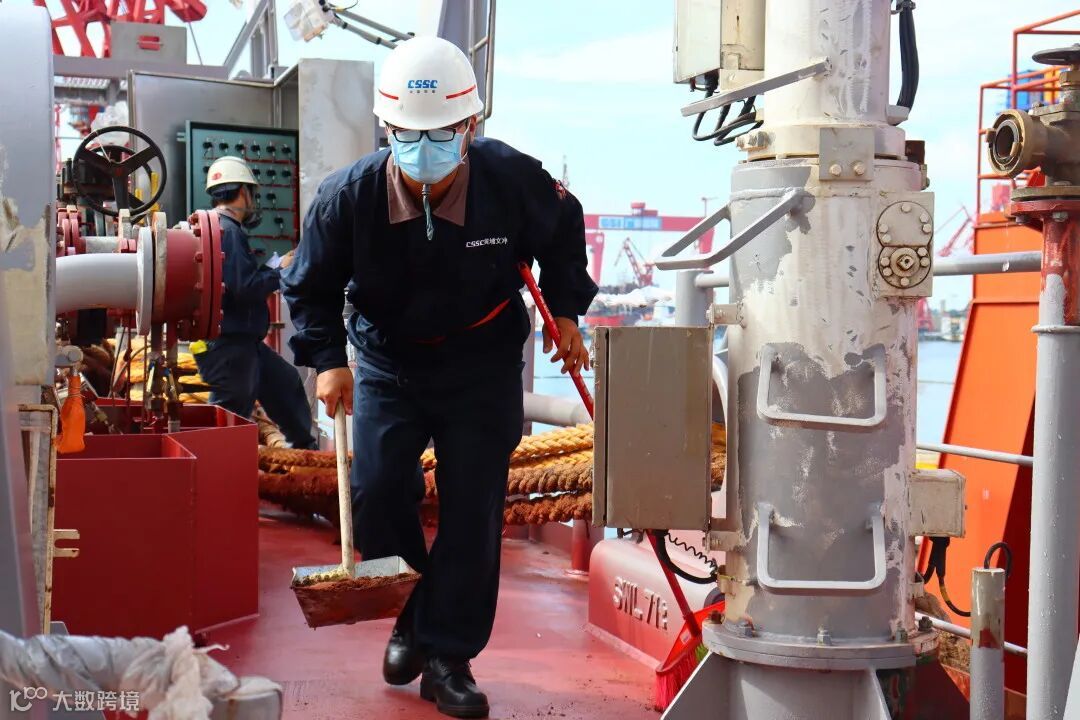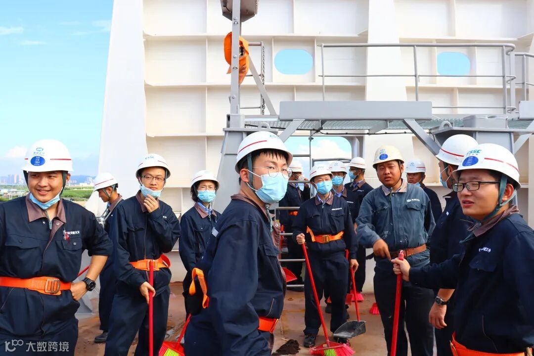 H5682船试航在即,为确保以更好的状态出航,8月20日,造船事业三部团委迅速出击,组织青年突击队对露天甲板进行全面的6s清扫。