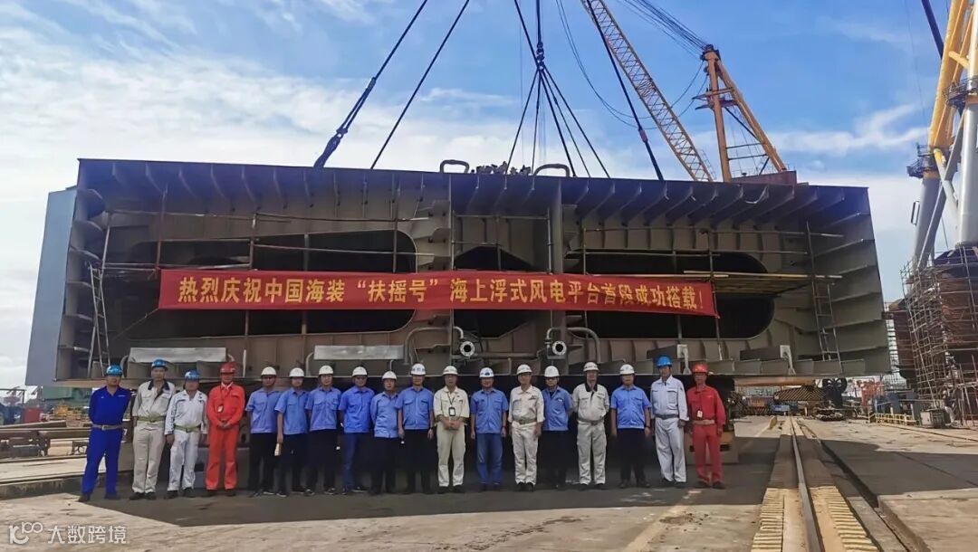 中国海装浮式平台塔筒项目——8月27日,海装浮式平台顺利完成首段吊装。