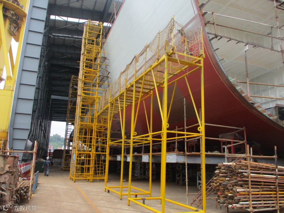 一直以来,公司长洲厂区脚手架搭设均以活动式多用途脚手架为主,采用落地搭设时工作量大,在造船各工序需要反复拆搭,不利于降低造船成本;同时由于所建船舶外表线形大且复杂,行业内常用的悬挂式脚手架难以适用。