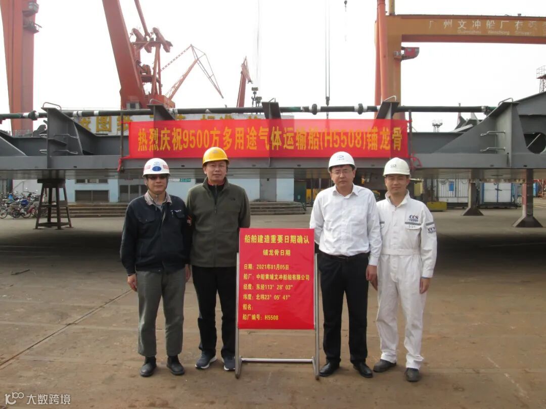 天津西南海运公司有限公司副总经理彭建华、广州海事局代表、中国船级社代表以及黄埔文冲四方单位领导和嘉宾共同参加并见证此次进坞暨铺龙骨仪式,并就该项目生产进度以及气体船市场发展情况作了深入交流。