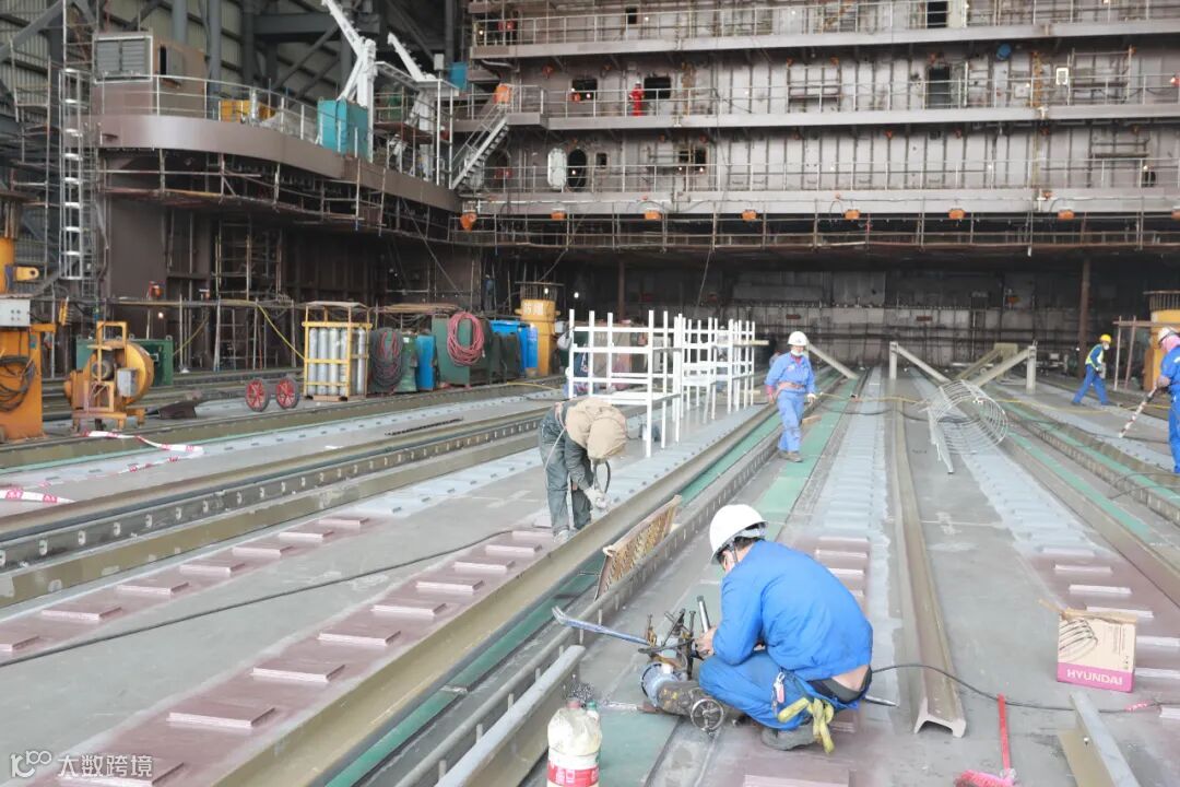 第二天,相关人员马上对施工班组进行施工交底,一句“停车间也要保节点”的口号马上响起,焊机没有自己拉,轨道挡路、自己搬,人员不足、主管上,部分岗位人员午餐由专人送到,直接在船上用餐,保证装配、焊工不待工,克服重重困难积极和船东、项目组沟通协调,共同确定施工方案。在船东的大力支持下,最终投入27000个小时,完成全船共9023块火车轨道垫板、3406米绑扎条、4906米千斤顶垫板安装任务,按期交付下到工序。