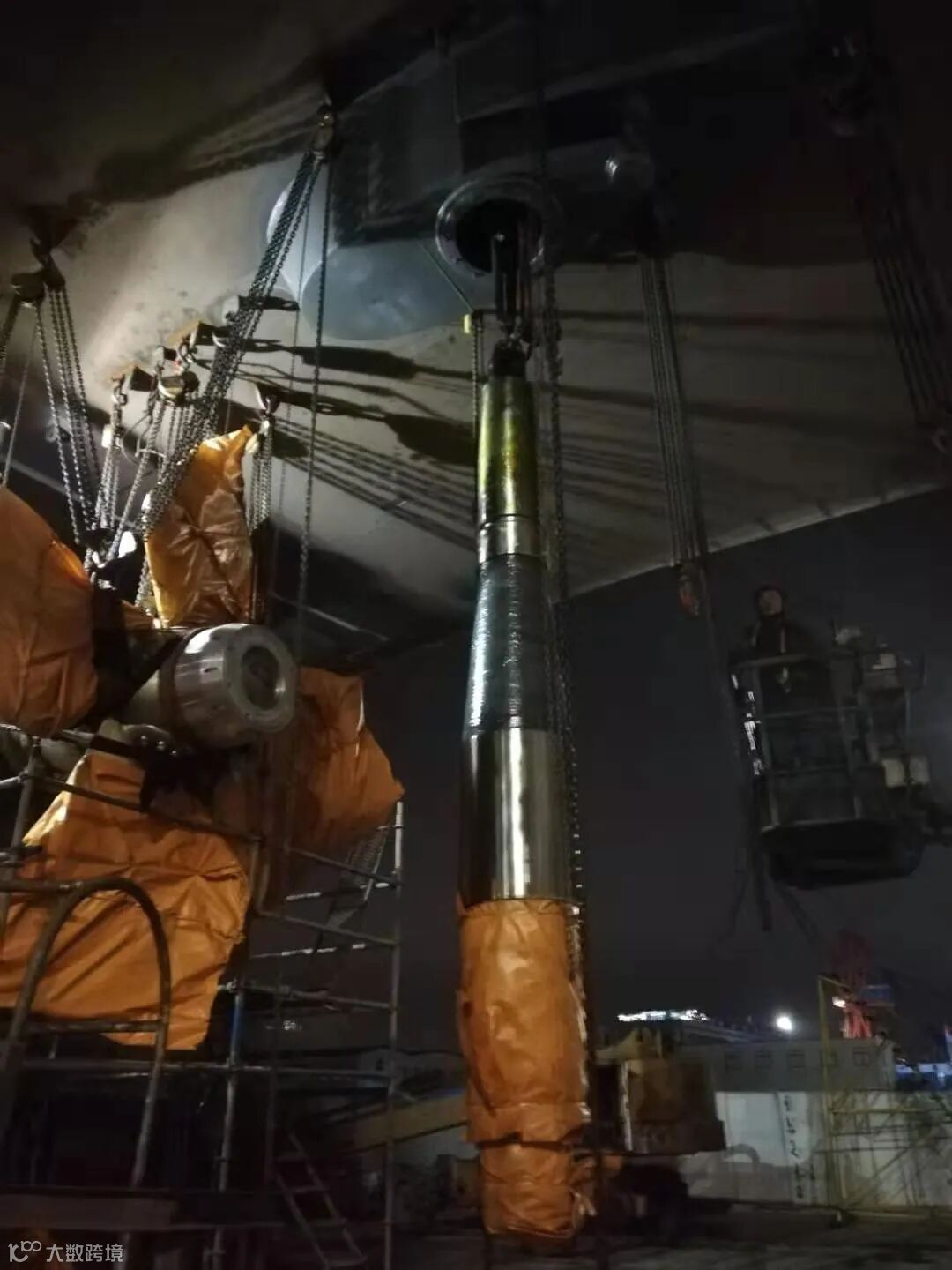轴成功吊完,另一个问题又随之摆在了眼前:由于该船舵杆上小下大,呈锥形形态,为避免破坏火车轨道等设备,不再开设工艺孔,以往产品船舵杆直接从舵机舱工艺孔处吊进舱的方法明显行不通,而且,如果从下方舵孔往上吊舵杆进舱,难度极大。为降低作业难度、提高工作效率,起运作业区再一次对方案进行优化,将原平板车倒入舵孔位置利用手拉葫芦翻身舵杆改成由汽车吊先翻身舵杆,然后再用电动葫芦进行安装,两根舵杆共节约安装时间12小时。