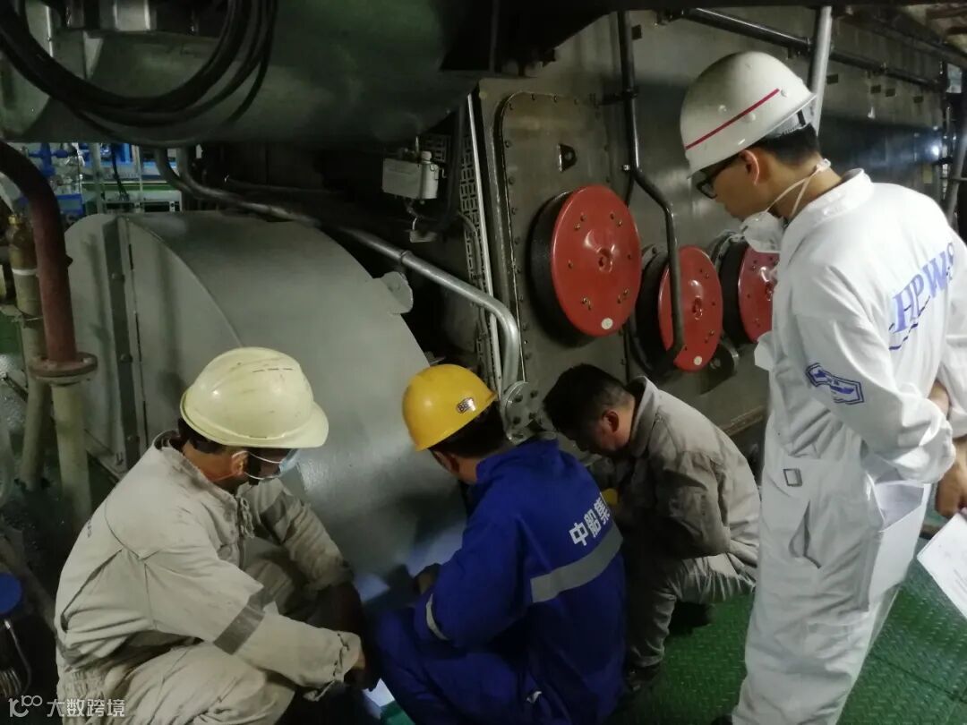试航次日早晨完成抛锚试验后,无缝衔接主机负荷项目。主机负荷开始前期出现了小问题,试航指挥部反应迅速,做出立即停车检查的指令。质量部与机装作业区积极配合主机厂家排查问题,问题得以在极短的时间解决,主机负荷试验重新开始,保证了试航顺利进行。