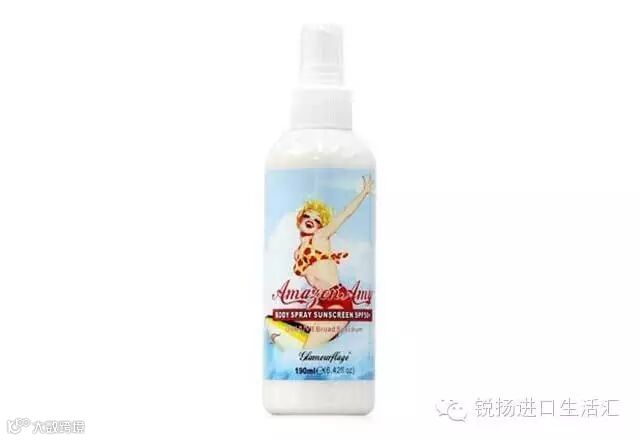 澳洲TGA认证!超长防晒、轻透保湿,适合户外运动!想让自己闪亮整个夏季,成为众人瞩目的焦点?随时随地,只需轻轻一按,散发着清新气息的防晒液均匀喷洒于全身,生成对抗UVA和UVB的防护膜,瞬间清透舒爽,绝不油腻,即使处于户外易出汗的环境,也不会因为毛孔阻滞而形成闷热厚重感,让你尽情沐浴在阳光之中,享受夏天的独有气息!——艾米亚马逊身体防晒喷雾SPF50+