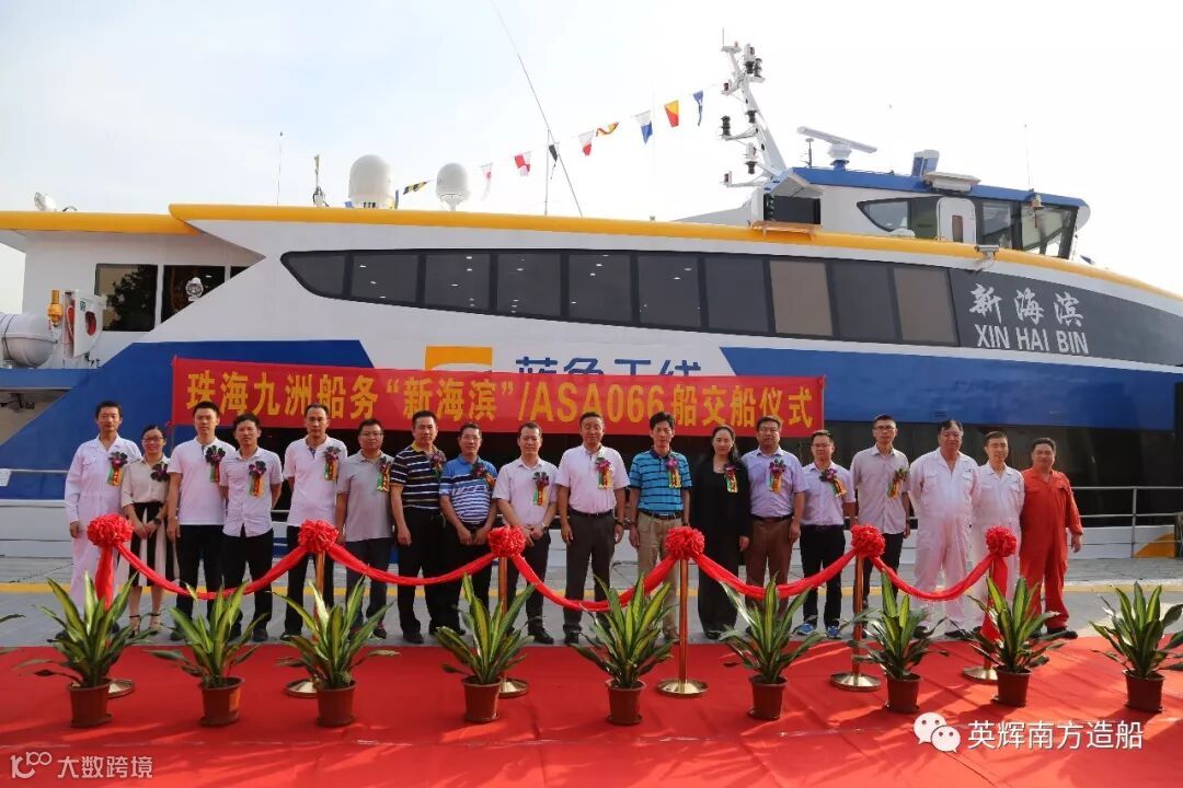 “新海滨”船创造了英辉南方以及国内铝合金船舶建造的一系列记录:在保证船舶质量的前提下,286天实现了船舶下水节点,328天内完成了首次试航,并在362天正式交付船舶。在这创造记录的背后,是船东单位一直以来的支持、信任和帮助,是英辉南方广大员工的通力配合,是船东单位及英辉南方对产品品质永无止境的追求,更是督促英辉南方努力的方向标--以产品和客户为导向,努力掌握设计建造的核心技术,持续打造国内国际领先的产品,推动国内铝合金船舶工业的稳步发展。
