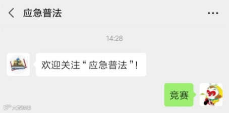 2、参与方式二关注“应急普法”微信公众号,回复“竞赛”,点击链接参与。