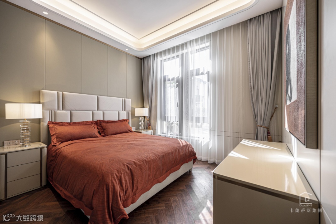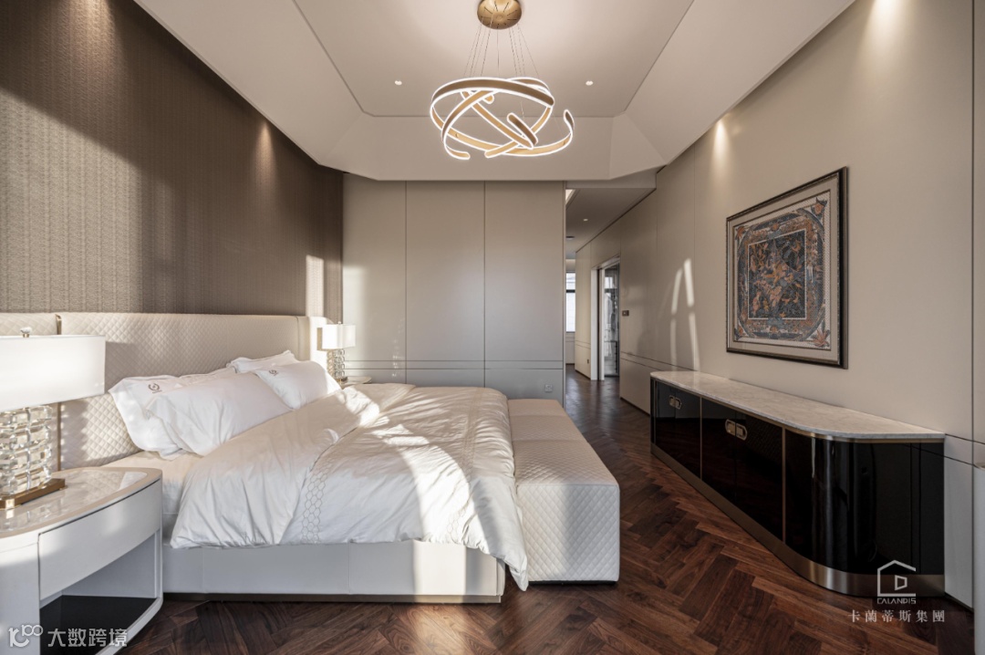 一楼的两个客卧风格大致相同,统一的无主灯设计将“好睡’哲学贯穿到底。简约大气的设计,不管是长辈还是好友都不会有突兀感。